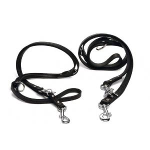 Een lederen dressuurlijn waarmee u uw hond kunt trainen, doordat deze riem verstelbaar is in verschillende maten. Zo kunt u de hond kort houden, alsmede wat meer vrijheid geven.