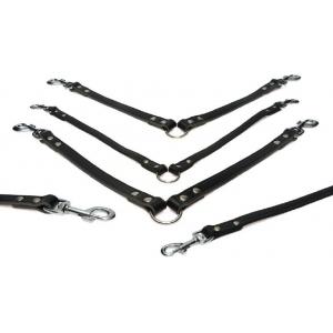 Lederen koppellijn voor 2 honden zwart