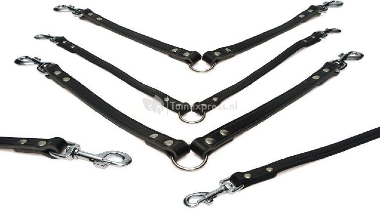 Lederen koppel voor de hond. Lekker makkelijk wanneer u twee honden tegelijkertijd wil uitlaten aan 1 riem.
