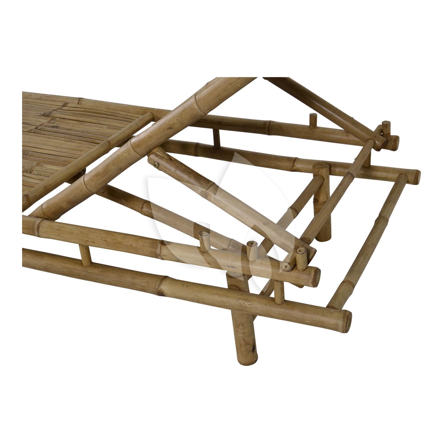Dit bamboe zonnebed heeft een natuurlijke en tropische uitstraling. Doordat het ligbed van bamboe is geproduceerd is het duurzaam, bamboe gaat namelijk zeer lang mee. De ligstoel heeft een in standen verstelbare rugleuning en kan ook helemaal plat gebruikt worden. Als het tuinbed plat wordt gebruikt is het tevens extra lang.