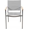 De lichtgrijze tuinstoel Marmaris is voorzien van een hoge rugleuning. De stoel heeft een luxe uitstraling door het gebruik van materialen zoals RVS in combinatie met het hout van de armleuning. De stapelstoel is licht van gewicht en daardoor makkelijk te verplaatsen. De stoel is eenvoudig te stapelen en bij het opbergen bespaart dat ruimte.