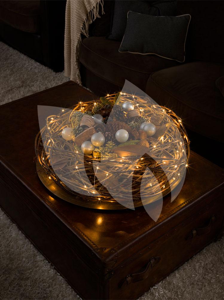Dit fijne lichtdraad heeft een zeer moderne vormgeving. Het zilverkleurige metaaldraad heeft geïntegreerde LED 'druppels'. Door deze fijne sfeerverlichting is het lichtdraad zeer goed te gebruiken voor de decoratie van accessoires en pronkstukken zoals een mooie krans of guirlande. Het lichtdraad is voorzien van 5m aansluitsnoer. Hierdoor heeft u ruime mogelijkheid om op afstand van het stopcontact uw woning te decoreren met dit zeer populaire lichtdraad. De amberkleurige LEDlampjes zorgen voor een sfeervolle verlichting tijdens de donkere maanden in het jaar!