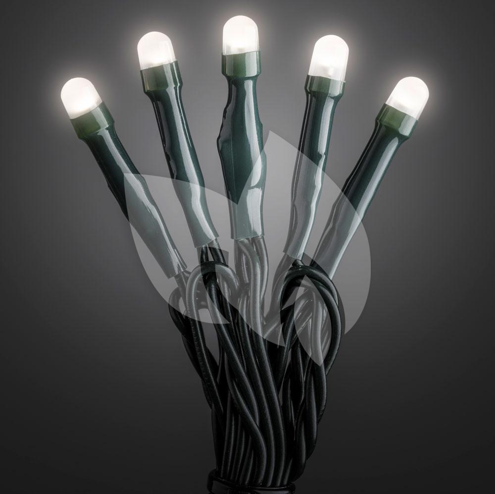 50 micro 'frost' LEDlampjes verspreiden een zacht, warmwit licht met dit lichtsnoer. Het lichtsnoer is zeer gebruiksvriendelijk aangezien het een enkel snoer betreft, dit werkt een stuk aangenamer met het versieren van de kerstboom ten opzichte van een snoer in een lusvorm. LEDlampjes zijn veilig in gebruik en daarnaast zeer duurzaam en energiezuinig. Dit lichtsnoer met micro LEDverlichting is zeer geschikt voor het versieren van uw kerstboom maar is tevens goed bruikbaar bij de verlichting van accessoires en andere objecten binnen uw woning. Het aangename sfeerlicht zal uw huis in de gewenste kerstsfeer brengen.