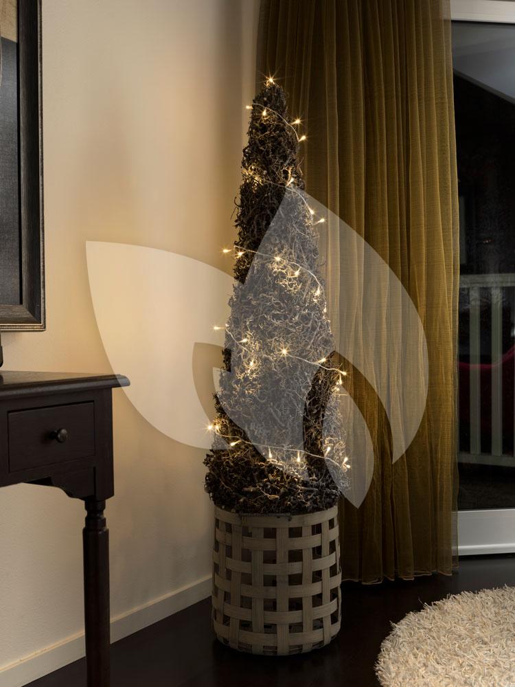 Sfeerverlichting haalt u in huis met dit transparante lichtsnoer met maar liefst 100 LEDlampjes. De lampjes met 'frost' top verspreiden zacht warmwit licht, het zeer geliefde licht tijdens de donkere wintermaanden. Dit zeer populaire lichtsnoer is een enkel snoer, geen lastige lus waar u mee hoeft te werken, het snoer hangt u eenvoudig in uw kerstboom. Uiteraard kunt u ook andere objecten sfeervol verlichten met deze binnenhuis verlichting. Van stopcontact tot eerste lampje heeft u maar liefst 3 meter bereik. Ideaal wanneer u een object op ruime afstand van het stopcontact wilt decoreren. U heeft vervolgens bijna 7m snoer met micro LEDlampjes waarmee u ieder gewenst object in de geliefde kerstsfeer kunt brengen!
