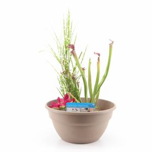 Met zijn neutrale taupe kleur is deze mini vijver geschikt voor ieder terras! De teil wordt geleverd inclusief vijvermand met daarin 3 waterplanten die vooraf geselecteerd zijn door de leverancier. Na ontvangst giet u leidingwater bij de waterplanten en u bent al klaar! Er komen geen vieze handen bij kijken, hoe simpel wilt u het hebben? Altijd al een waterpartij in uw tuin willen hebben maar beperkt door de ruimte? De mini vijver is de oplossing; in een hoek in de tuin of op tafel, die keuze ligt bij u!