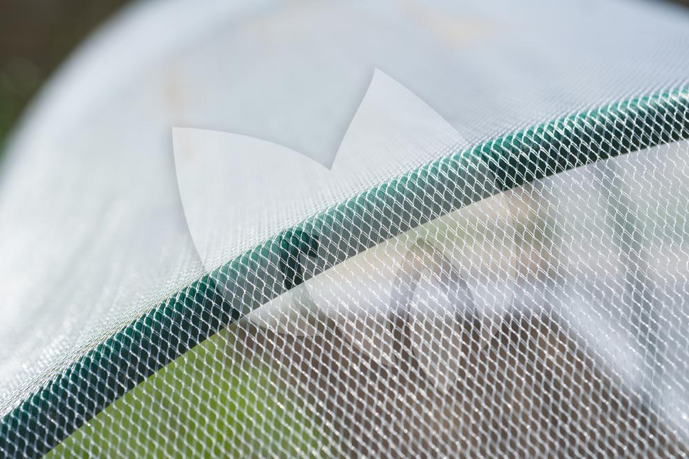 Het anti-insectengaas kunt u zowel over tunnelbogen spannen als rechtstreeks op de gewassen plaatsen. Wanneer het gaas over bogen heen gespannen is, zijn uw gewassen beschermd tegen de belangrijkste en meest schadelijke vliegende insecten zoals de wortelvlieg, groot koolwitje, aardvlooien etcetera. Met het gaas verankerd aan de grond worden uw gewassen niet alleen beschermd tegen vliegende insecten, maar houdt het bovendien ook slakken en rupsen tegen. Het gaas is in een net vormgegeven en voorzien van mazen met een opening van 1,8 mm (afmeting uit de foto is incorrect). Het gaas heeft een transparante kleur en is gemaakt van uv-bestendig polyamide met een dichtheid van 38 g/m². Het gaas zal alleen insecten tegenhouden en licht, water en lucht gewoon doorlaten.