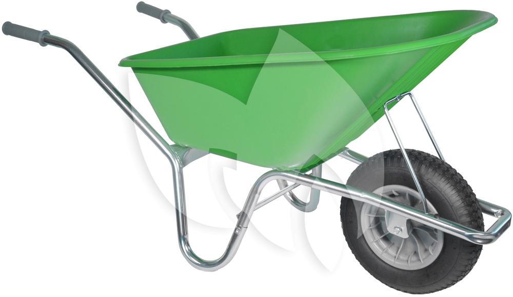 De verzinkte kruiwagen beschikt over een frisse uitstraling, dit komt door de lime groene polypropyleen bak. Ondanks dat de kruiwagen zelf heel licht is kan je maar liefst 100 liter inhoud vervoeren. Het onderstel van de kruiwagen is gemaakt van ronde metalen buizen, op deze buizen zit een zink laagje. Het zink laagje zorgt voor bescherming tegen slecht weer.