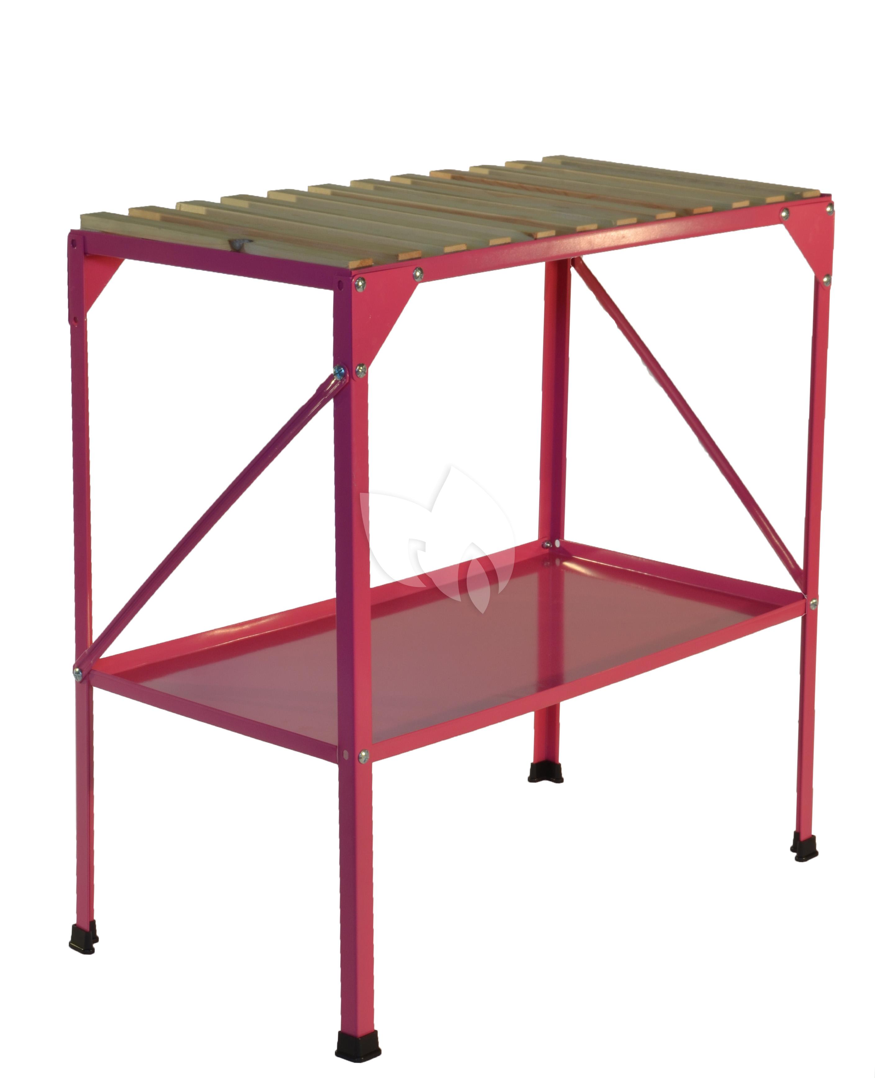 De oppottafel is 77 centimeter lang, 40 centimeter diep en 77 centimeter hoog. Hiermee heb je voldoende ruimte om jouw planten te verpotten. Een ander voordeel is de extra metalen plank onder het werkblad. Dit blad vangt niet alleen het overschot aan aarde op, je hebt namelijk ook de mogelijkheid om hier wat potgrond of tuingereedschappen op te bergen. De besproken oppottafel is fuchsia van kleur. Hij is echter in een aantal verschillende kleuren te verkrijgen. Bekijk snel de specificaties voor wat meer informatie!