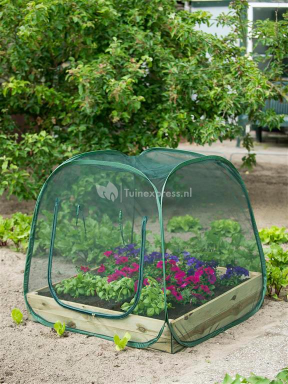 De pop-upkas bestaat uit een stalen frame met een ''pop-up''-opzetsysteem. De hoes bestaat uit een anti-insectennet en is gemaakt van polyester. Het anti-insectennet is voorzien van mazen van 1 x 1 mm en heeft een dichtheid van 55 g/m². Zo worden uw groentes goed beschermd tegen ongedierte en zorgen de gaatjes tevens voor een optimale beluchting. De pop-upkas is erg fijn en gemakkelijk in gebruik. Wanneer u de kas niet wilt gebruiken, kunt u hem eenvoudig opruimen en zal hij weinig plaats innemen in uw berging.