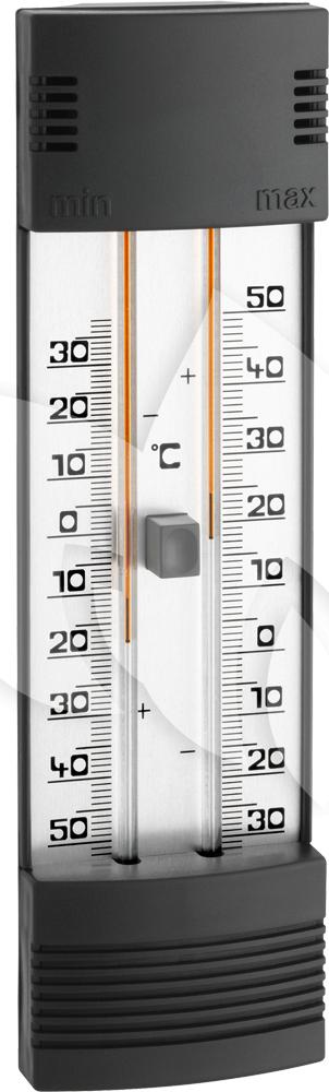 Tijdloos en eenvoudig is deze min/max thermometer. Deze thermometer geeft de dagelijkse minimale en maximale temperatuur aan. De thermometer is voorzien van resetknop en is kwikvrij. De thermometer is kunststof en hierdoor geschikt voor zowel buiten- als binnengebruik.