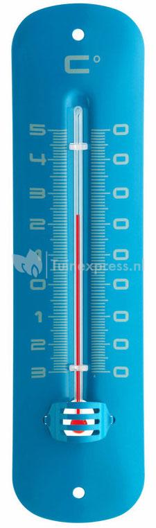 Metalen thermometer 19 cm blauw voor gebruik binnen en buiten