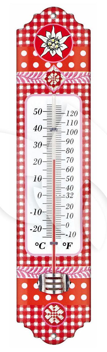 Metalen thermometer Alpen 29 cm rood voor gebruik binnen en buiten