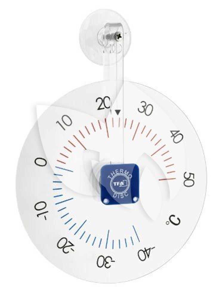 De kunststof Thermo Disc plakt u eenvoudig met behulp van de zuignap aan uw raam. Gaten boren is niet nodig bij deze handige thermometer. De disc draait rond om u de juiste buitentemperatuur te laten zien. De huidige buitentemperatuur leest u af bij het pijltje op de houder. Deze bijzondere thermometer verwijderd u eenvoudig wanneer nodig en plaatst u ook weer makkelijk terug met behulp van de zuignap.