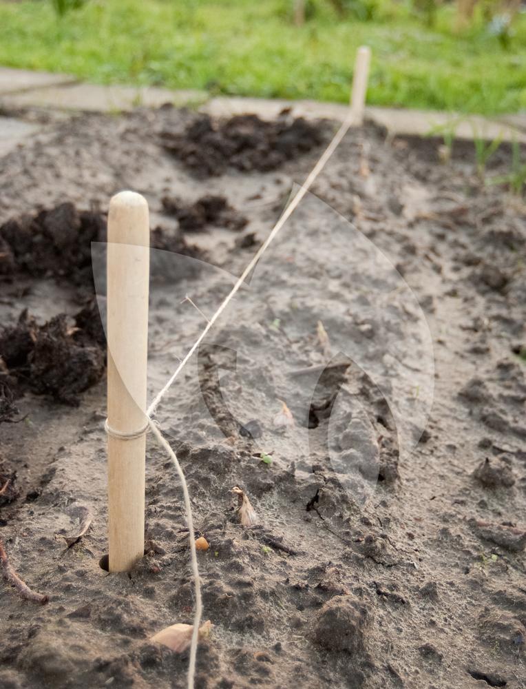 Dit pootlijn set bestaat uit twee stokken en een touw. Met behulp van dit set kunt u rechte lijnen trekken om uw planten in een rechte lijn te zaaien of planten.