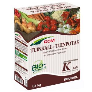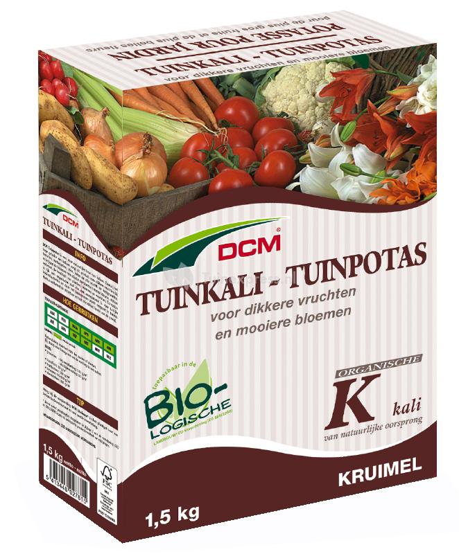 Natuurlijke potas voor dikkere vruchten en mooiere bloemen. Tuinpotas is een natuurlijke bron van kalium en hierdoor ontstaan de dikkere vruchten. Tuinpotas is te gebruiken bij tomaten, uien, aardappelen, vruchtgroenten, knolgroenten en kolen. Verder zorgt het ook voor intense kleuren bij allerlei sierplanten. Door de kalium wordt de kwaliteit van de planten, bloemen en vruchten verbeterd. De organische stof in de potas is een energiebron voor talrijke bodembacteriën en deze organische stof wordt door het bodemleven omgezet in humus. De humus zorgt ervoor dat de structuur en het microbieel leven van de grond verbeterd.