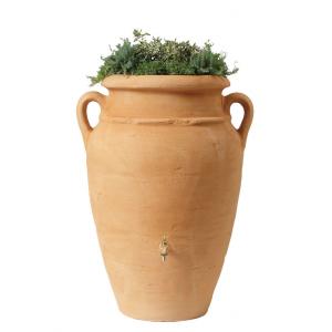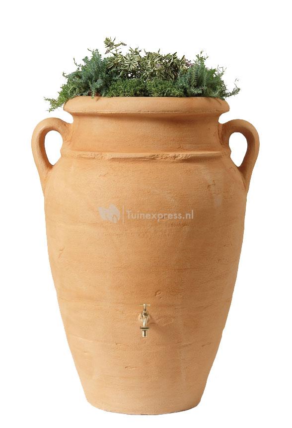 Zeer realistisch vormgegeven terracotta vaas / regenton van kunststof. Door het elegante design neemt deze regenton minimale ruimte in beslag. Voorzien van een lage tap opening voor het makkelijk legen van de regenton.