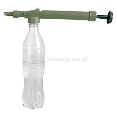 Met deze handige spuitkop kunt u voortaan uw planten bewateren met uw eigen petfles. De spuitkop past op de meeste 1 en 2 liter plastic frisdrankflessen. De ingebouwde pomp brengt de druk op in de fles om de vloeistof met een constante druk uit de fles te laten komen. De spuitkop kan gebruikt worden voor verschillende vloeistoffen en is dus ook ideaal om ongedierte op uw planten te bestrijden. De spuitkop kan ingesteld worden op verschillende standen, zo kan hij versteld worden van een harde straal naar fijne nevel.