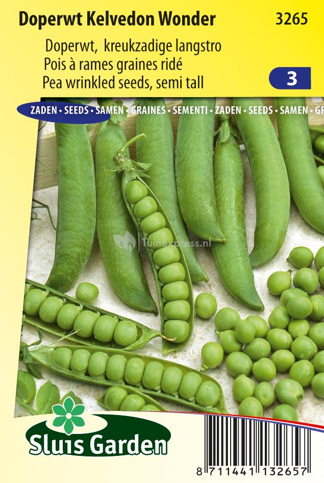 De doperwt ''Kelvedon Wonder'' is een middelvroege, half hoge en kreukzadige doperwt. Deze doperwt bevat minder zetmeel en heeft die bekende zoete doperwtensmaak. Voor een vroege oogst kunt u vanaf half januari gaan beginnen met voorzaaien onder glas. Laat de voorgezaaide planten eerst afharden voordat u ze eind maart gaat uitplanten. Voor een latere oogst kunt u vanaf de maart direct in de volle grond zaaien op regels van 40 cm met om de 10 cm een erwt. De ''Kelvedon Wonder'' kan eventueel zonder gaas worden geteeld en de erwtjes zijn zeer geschikt om in te vriezen.