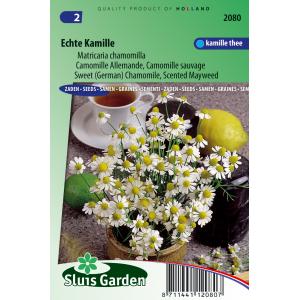 De Matricaria chamomilla is de echte kamille. De echte kamille staat bekend om zijn vrij sterke geur en bevat veel etherische olie. De bloemetjes moeten bij zonnig weer worden geoogst en goed worden gedroogd. U kunt de gedroogde bloemhoofdjes gebruiken om een lekkere en gezonde thee van te trekken. Kamillethee heeft een zachte en licht honingachtige smaak en werkt als een rustgevend middel bij slapeloosheid en ontstekingen.