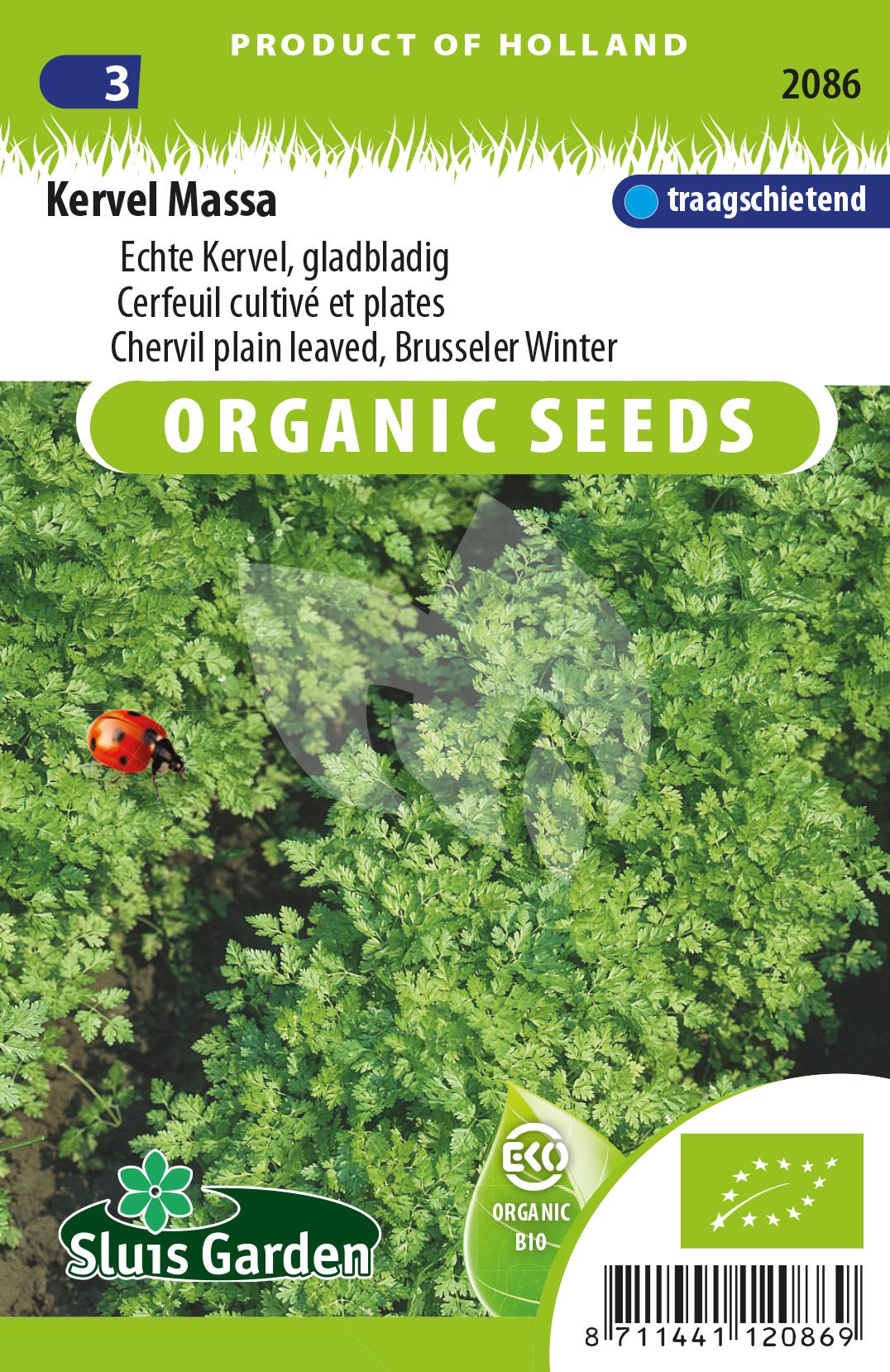 Kervel is familie van de peterselie en koriander. De kervel ''Massa'' zijn biologisch geteelde zaden die zorgen voor een gladbladig gewas met een goede kou tolerantie en die niet snel in de bloei schiet. Zaai de kervel direct in de volle grond. U hoeft de zaden nauwelijks te bedekken, maar alleen lichtjes aan te drukken en eventueel later verplanten. Zorg wel voor een vochtige, humusrijke grond en een standplaats half in de schaduw. Het kruid kunt u in de winter ook binnenshuis gaan kweken op potten. Zorg er dan wel voor dat de plant op een koele en zonnige plek staat.