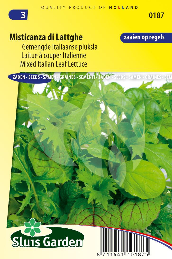 Deze italiaanse mix geeft uw salade een zeer karakteristieke smaak en beleeft u een waar avontuur op het gebied van smaak! De gemengde Italiaanse pluksla is erg geliefd onder de tuinders aangezien de slamix bestaat uit zowel wilde als gecultiveerde gewassen. Het snijsla mengsel bestaat onder andere uit: Sareptamosterd, Bladcichorei, Wilde Rucola, Waterkers, Erba Stella, Perilla en Witte Mosterd.