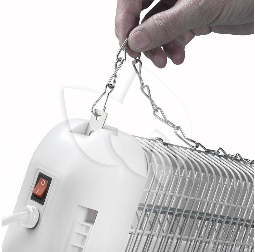 De insectenlamp is voorzien van een ketting waardoor hij ook hangend te gebruiken is. De beste plaats voor een insectenlamp is binnen de vlieghoogte, deze ligt over het algemeen tussen een hoogte van 1 en 2m. Gaat het u voornamelijk om muggen, dan plaatst u de insectenlamp het best tussen 1 en 1,5m hoogte.