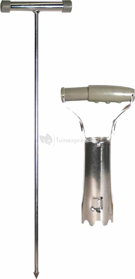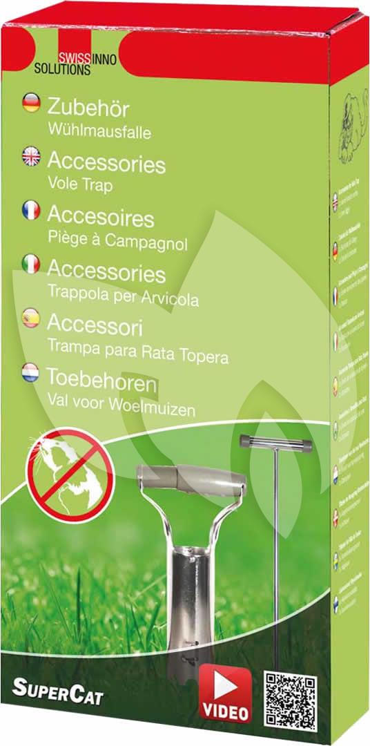 Deze gangzoeker en gatensteker past perfect bij de woelmuizenval SuperCat! De woelmuizenval kan doormiddel van de gangzoeker en gatensteker makkelijker en beter worden geïnstalleerd. De set bestaat uit een twee-delige gangzoeker van 50 cm lang en een speciale gatensteker om een 6 cm gat te maken naar de woelmuizentunnel om daarin de val te plaatsen.