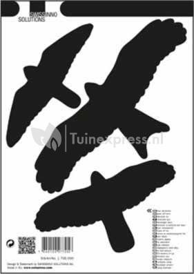 Deze raamstickers schrikken andere vogels af op een plek waar u ze niet wilt hebben. De stickers kunnen ook worden gebruikt op een plek waar het glas nauwelijks te zien is. Zo geeft u aan dat er glas zit, wat weer voorkomt dat vogels tegen uw ramen aanvliegen. De stickers worden verpakt in een set van vijf stuks.