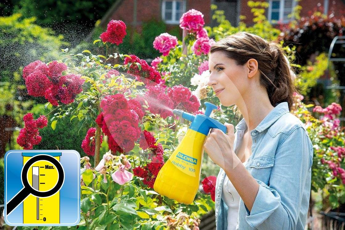 De Gloria Hobby 100 zorgt ervoor dat lang werken moeiteloos wordt met een gelijkmatig goed sproeibeeld. Deze handspuit heeft een traploos verstelbare sproeier met messing insert en comfortabele grip alsmede een grote vulopening voor eenvoudig vullen en een transparante zichtstreep zijn overtuigende productdetails van de Hobby 100.