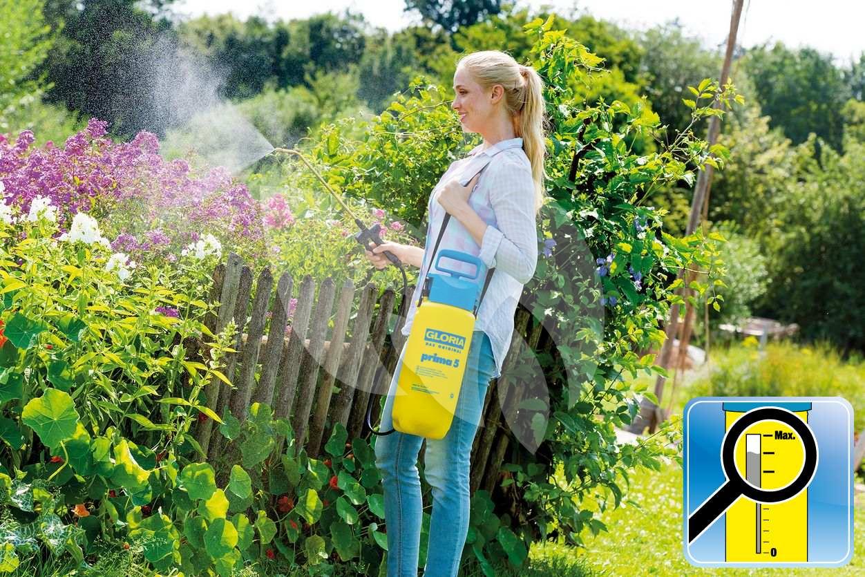 De drukspuit prima 5 van Gloria is de klassieker en bestseller onder de drukspuiten. Deze drukspuit beschikt over een krachtige kunststof pomp inclusief messing spuitstok en een holle kegelsproeier met een maximale werkdruk van 3 bar en 7 liter tankinhoud om voldoende druk op te bouwen. De GLORIA prima 5 heeft een vulinhoud van 5 liter.