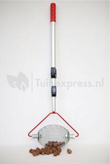 Een notenraper is bedoeld voor het gemakkelijk verzamelen van diverse soorten noten zonder te bukken. De hazelnotenraper met telescoopsteel is hiervoor zeer geschikt, raap kleine noten op zoals hazelnoten of eikeltjes. Het wiel is veervormig en vangt zo met een veegbeweging de voorgenoemde kleine nootjes op zonder enige moeite. De hazelnotenraper is leuk en eenvoudig om te gebruiken in de tuin of moestuin. Dankzij de telescoopstel was het nog nooit zo makkelijk om met een notenraper diverse kleine nootjes op te rapen.