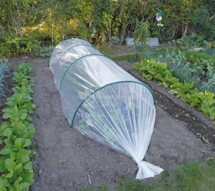 Het uv-bestendige folie is gemaakt van doorzichtig polyethyleen (LDPE) en heeft een dikte van 50 µ. U kunt de groei- en afdekfolie aanbrengen op tunnelbogen, deze zijn niet inbegrepen.