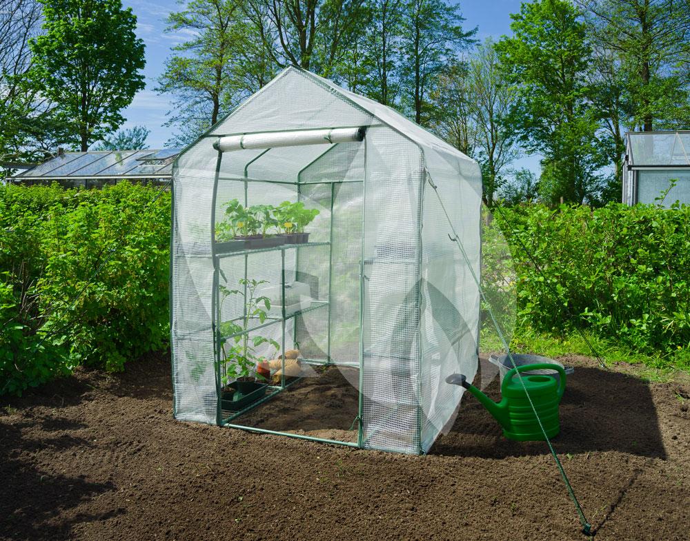 De tuinkas kunt u in uw tuin plaatsen, maar staat ook goed op uw patio. De tuinkas is voorzien van een bodemframe zodat u, indien nodig, de kas eenvoudig kunt verplaatsen. Het metalen frame is voorzien van een epoxycoating en de buizen hebben een diameter van 16 mm. Het groene foliehoes om het frame is gemaakt van versterkt uv-bestendig polyethyleen met een dichtheid van 140 g/m². De tuinkas is voorzien van een centrale opening aan de voorkant met ritssluiting.