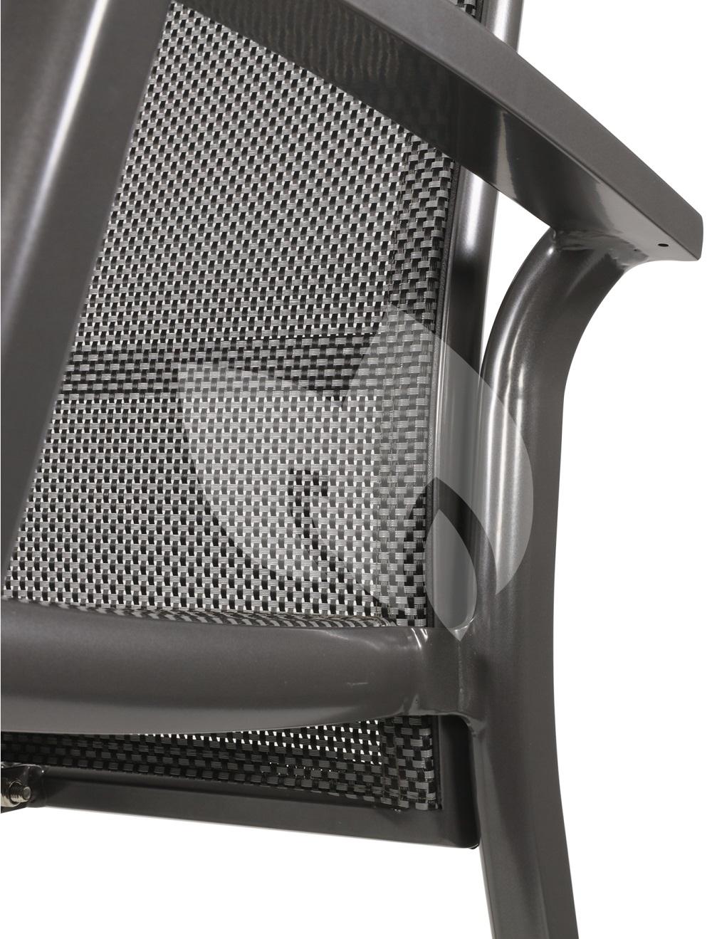 Het zitvlak en de rugleuning zijn gemaakt van textileen. Dit is een lichtgewicht stof met een aantal fijne eigenschappen die met name buiten goed tot zijn recht komen. De stof is gemaakt van sterke PVC draden die voorzien zijn van een coating. De stoel is daardoor sterk, UV bestendig, niet of nauwelijks vatbaar voor schimmels, vuil en ongedierte.