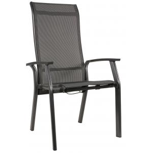 Deze lichtgewicht tuinstoel heeft een hoge verstelbare rugleuning. Door de rechte zit is deze standenstoel ook zeer handig in gebruik aan de tuintafel. De zitting en de rugleuning sluiten goed op elkaar aan zodat zitten op deze stoel zeer comfortabel is. Het frame is van aluminium met een matte poedercoating. De stoel past door zijn eenvoud en uitstraling in iedere tuininrichting.