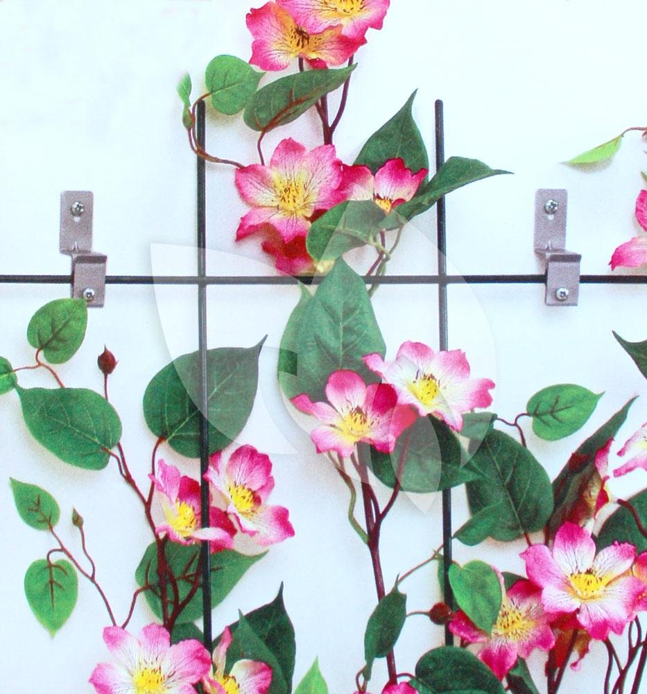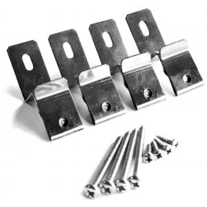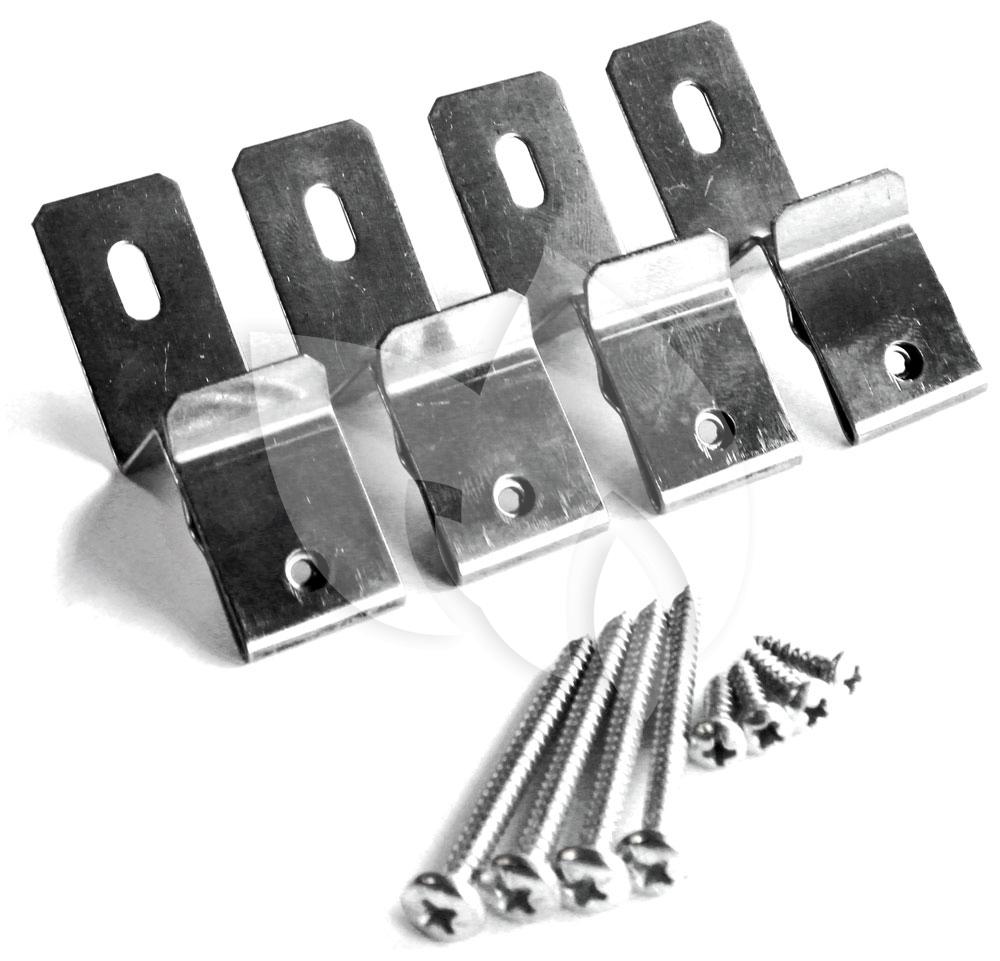 Muurbevestigingsset om uw plantenklimrek mee op te hangen. De set bestaat uit 4 klemmen en schroeven en pluggen om de klemmen mee te bevestigen. Door het RVS van de bevestigingsklemmen zijn ze erg stevig en gaan ze lang mee.