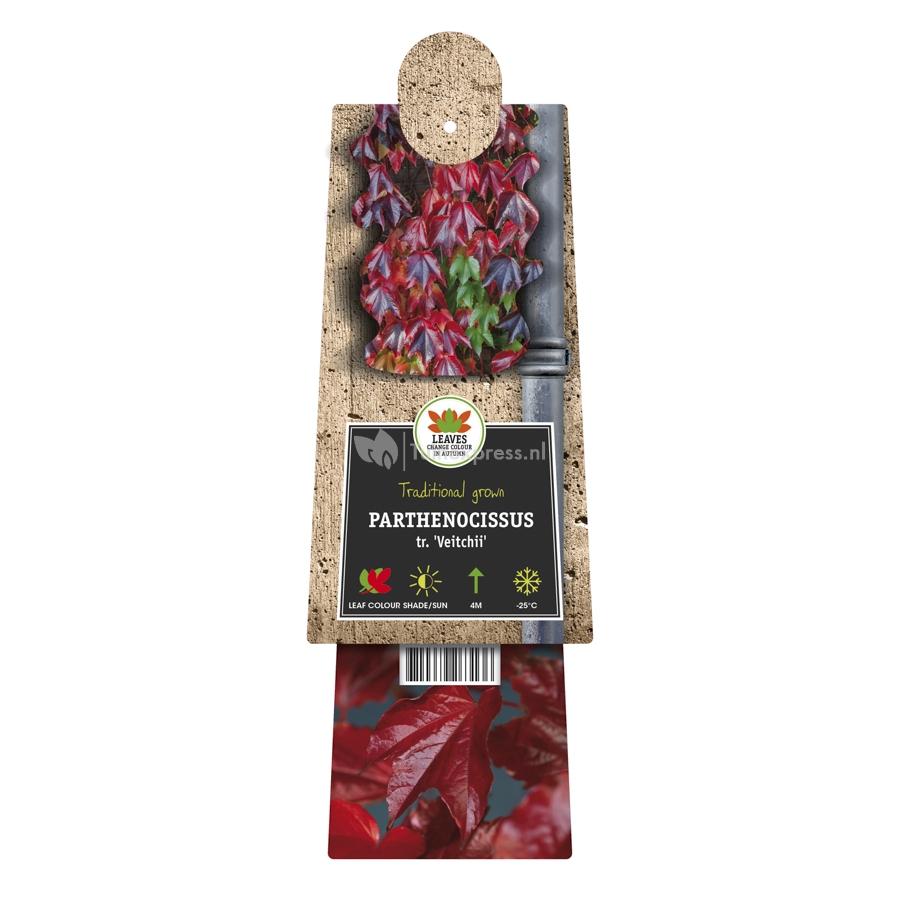 Deze wilde wingerd heeft prachtige, grote bladeren die dieprood kleuren in het najaar voor ze afvallen. De bloei van de wingerd is onopvallend en de enthousiaste klimplant moet het dan ook van zijn decoratieve blad hebben. De wingerd is zelfhechtend door middel van zuignapjes. Deze kunnen echter schade aanbrengen aan houtwerk. De wingerd is meer geschikt voor begroeiing van gevels. Als u de ruimte en mogelijkheid heeft voor het plaatsen van een wingerd, dan is het een absolute blikvanger in uw tuin!