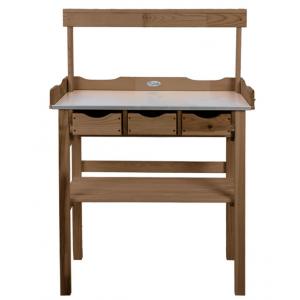Deze oppottafel is zeer praktisch hij heeft namelijk drie lades waarin je al je oppotbenodigheden en klein tuingereedschap binnen handbereik houdt. Met twee planken welke gebruikt kunnen worden worden voor bijvoorbeeld opberging, plaats hier lege potten of leg er enkele decoratieve items op om de oppottafel aan te kleden. De oppottafel is gemaakt van FSC gecertificeerd hout en is voorzien van een zinken werkblad wat eenvoudig schoon te houden is.