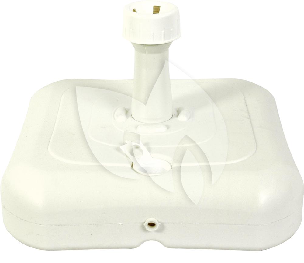 Deze parasolvoet kunststof vulbaar 10 liter is ideaal voor uw stokparasol met een stokdiameter tussen de 20 en 38 millimeter. Doordat u de parasolvoet zelf dient te vullen met water is het leeggewicht slechts 2 kg, zo kunt u de parasolvoet gemakkelijk verplaatsen. Wanneer u de parasolvoet vult kunt u het gewicht gemakkelijk verhogen tot 10 kg. De parasolvoet heeft de kleur wit maar is ook verkrijgbaar in de kleur antraciet.