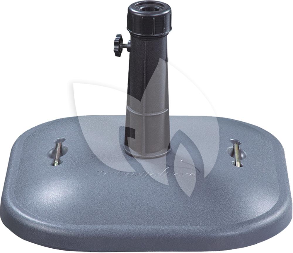 Deze parasolvoet is gevuld met beton en voorzien van een kunststof behuizing. Twee handvatten maken het verplaatsen van deze parasolvoet makkelijker.