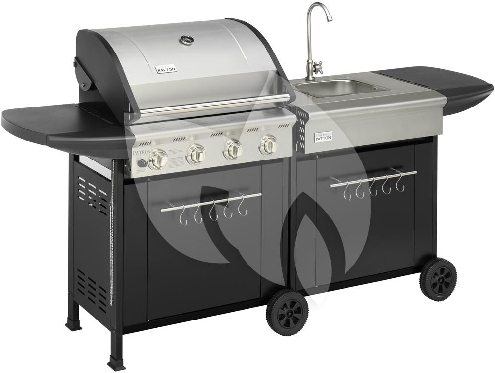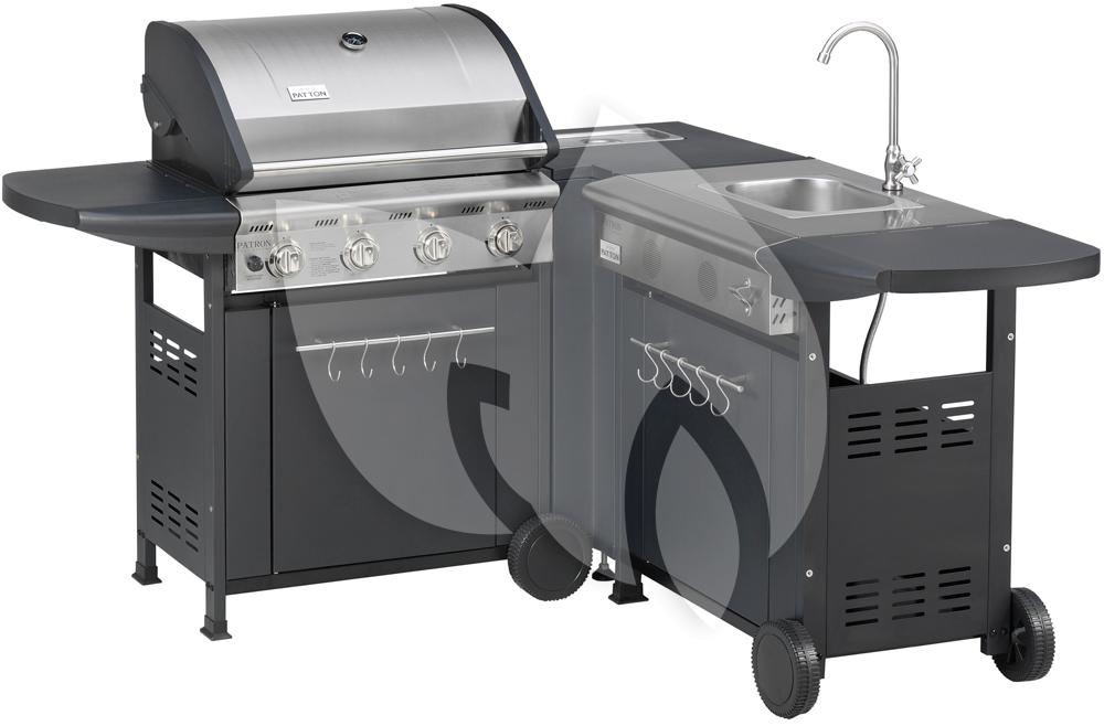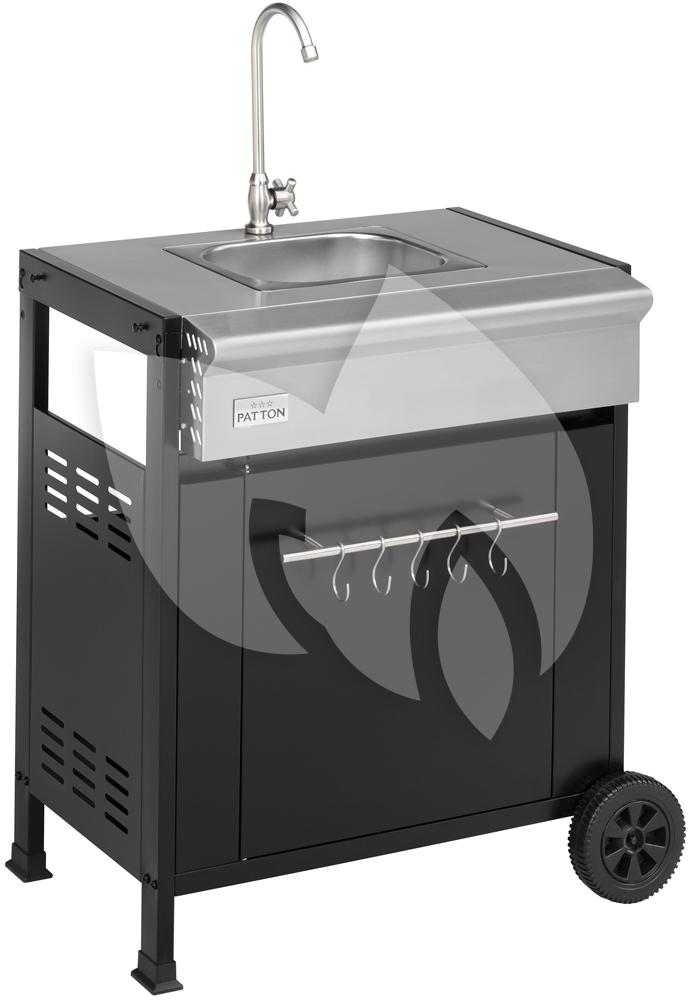 De Patron cart tap wash is voorzien van spoelbak, kraan en onderkast met deur en gereedschapsrek met 5 haken. Compleet met koppeling en slang. Koppelbaar aan alle Patron barbecues.