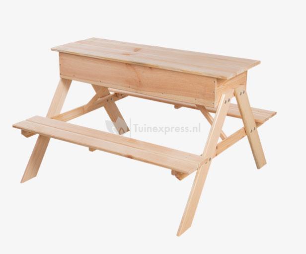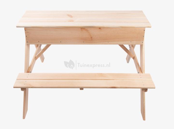 Deze leuke houten picknicktafel met zandbak is ideaal voor het vermaak van zeker vier kinderen. Wanneer je de zandbak wilt gebruiken, verwijder de deksel. Deze deksel houdt tevens het zand schoon wanneer gesloten en dient als tafelblad van de picknicktafel. 2 in 1 !