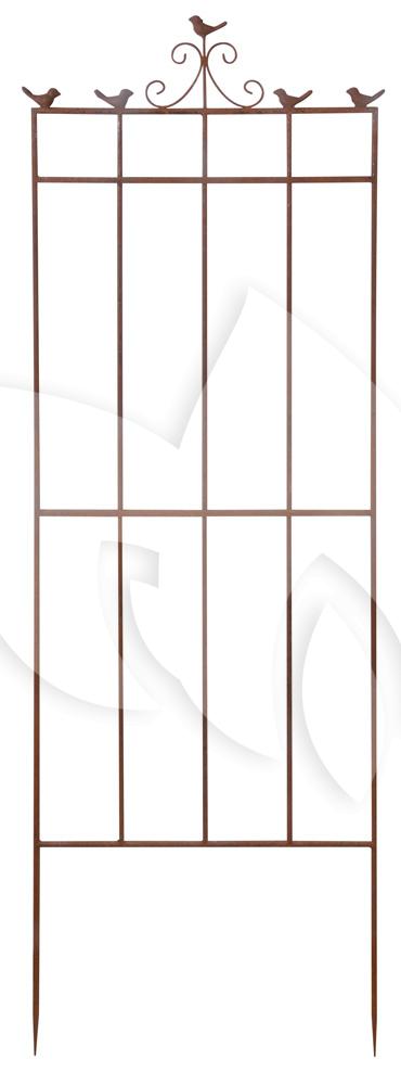 Ondersteuning nodig voor de klimplanten in uw tuin? Deze plantensteun is daar ideaal voor en staat ook nog eens sierlijk in uw tuin! Ook een leuk detail, de plantensteun heeft aan de bovenkant vogels die op de sierlijke krullen zitten. De plantensteun heeft een roestige afwerking en is door de toegespitste punten aan de onderkant gemakkelijk in de grond te plaatsen.