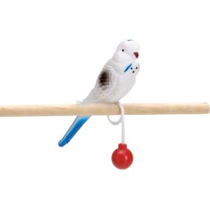 Een plastic parkiet op ring, zodat u deze makkelijk om de zitstok kunt schuiven. Voor gezelschap van uw echte parkiet