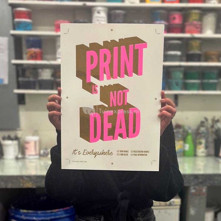 De posters worden handmatig gedrukt op een Risoprinter. Riso-druk is een heel milieuvriendelijke techniek. De inkt wordt gemaakt van duurzaam geproduceerde sojaolie en de machine verbruikt weinig energie omdat het om een koud printproces gaat. De posters worden in een gelimiteerde oplage gedrukt. Zo ontvang jij jouw unieke, eco-friendly poster van Nederlandse bodem.