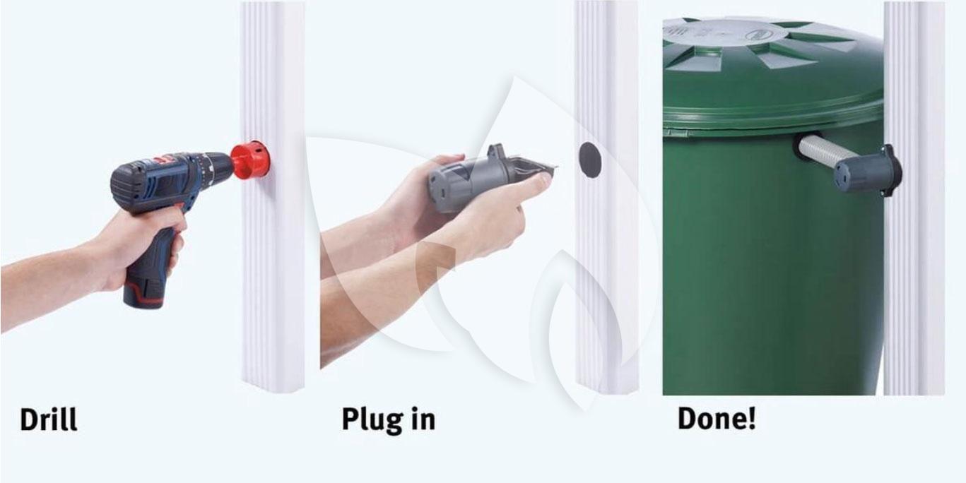 De regenton vulautomaat Rapido zorgt naast zijn eenvoudige installatie ervoor dat uw regenton wordt voorzien van regenwater zonder dat vuil en bladeren in uw ton terechtkomen. Ook kunt u de vulautomaat instellen op een zomer- en winterstand en is hij voorzien van een overloopfunctie die voorkomt dat uw regenton overstroomt. De Rapido kan bevestigd worden aan zowel vierkante als rechthoekige regepijpen, waarbij de vulautomaat een dakoppervlakte van maar liefst 80m2 aan kan. De vulautomaat wordt in een complete set aan u geleverd, bestaande uit een boorstuk, afdichtmiddel en een flexibele verbindingsslang van 40 cm.