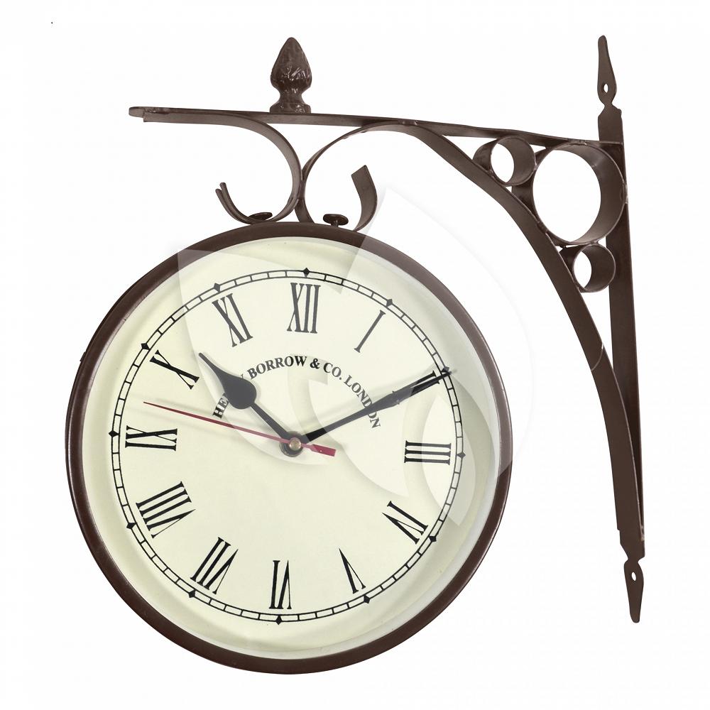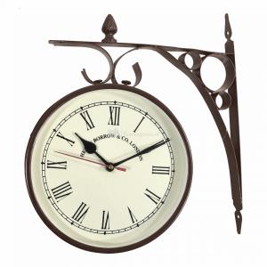 Retro Stationsklok groot metaal donkerbruin 30x8 cm