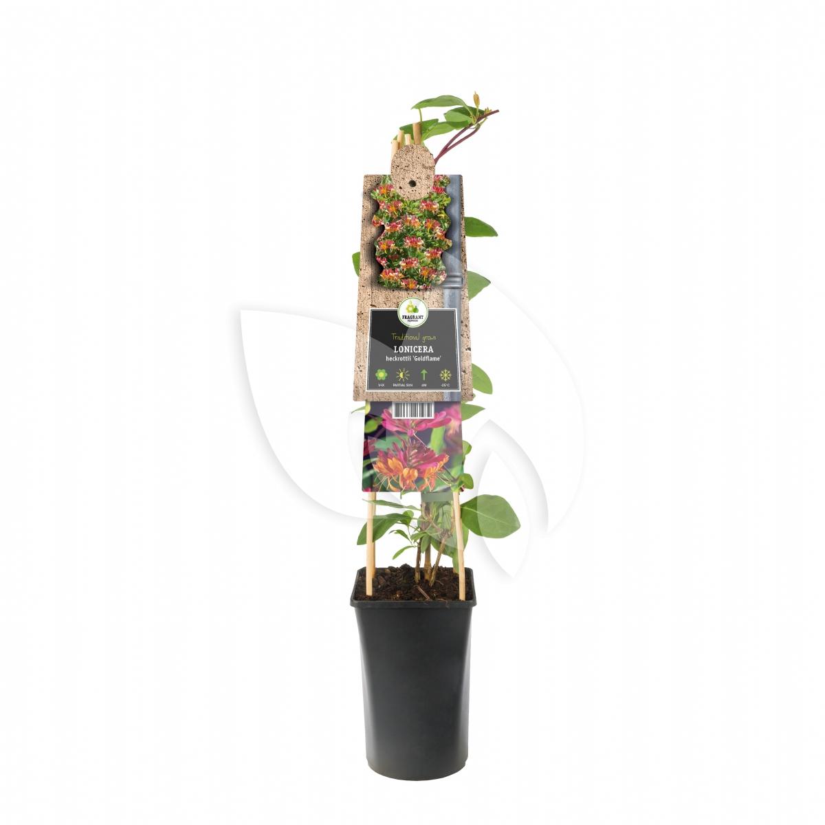 Een klimconstructie in uw tuin waar u nog een plant tegen wil plaatsen? De kamperfoelie weet zich er wel raad mee! Al slingerend werkt de kamperfoelie zich een weg de hoogte in. De kamperfoelie heeft zijn oorspronkelijke naam te danken aan zijn vlamkleurige bloemen. De prachtige kleurencombinatie komt nog meer tot zijn recht tussen het grote groene blad. Hier kunt u de gehele zomer van genieten!