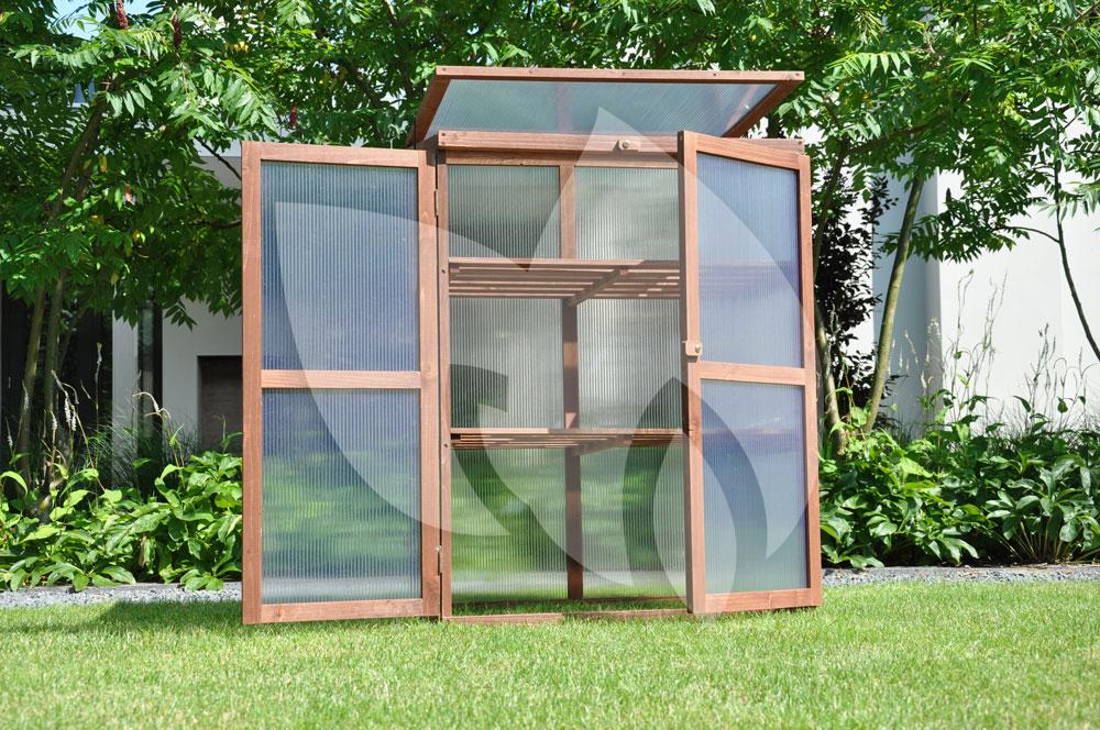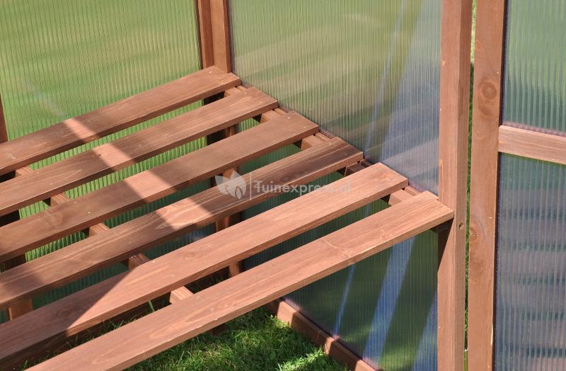 Deze kweekkas bestaat uit een houten frame en heeft een kunststof afdichting. Het hout is bruin verduurzaamd en afkomstig uit goed beheerde bossen. De afdichting van polycarbonaat heeft een dikte van 4 mm en is dubbelwandig. Polycarbonaat heeft verschillende voordelen: het is het niet gevoelig voor breuk, geheel veilig in gebruik en heeft het bovendien een isolerende werking