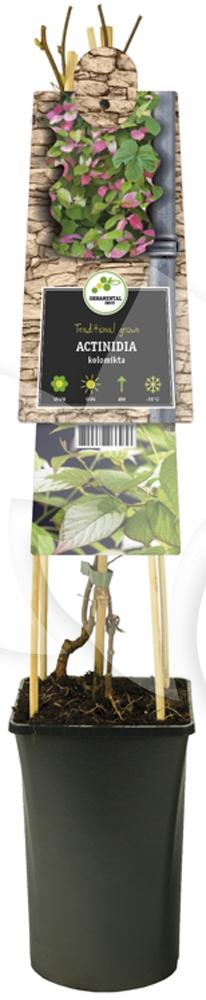 Een pracht van een klimplant is de sierkiwi. Een redelijk onbekende klimplant met prachtig bont blad. Het blad van deze fraaie klimplant lijkt in de verf gedoopt te zijn; her en der is het blad roze tot wit gekleurd wat een speels en decoratief effect geeft aan deze klimplant. U heeft wel even geduld nodig: de kleurschakering verschijnt pas wanneer de plant enkele jaren oud is. In het voorjaar draagt de sierkiwi een kleine witte bloesem. Aangezien de sierkiwi vooral om zijn decoratieve functie gekweekt wordt en er twee geslachten nodig zijn om tot vruchtvorming te komen, zullen de meeste sierkiwi's geen vruchten ontwikkelen. Mocht u wel dat geluk hebben; de vruchten lijken in de verste verte niet op een kiwi; het zijn eerder kleine besjes en u kunt de zoete vruchtjes eten!